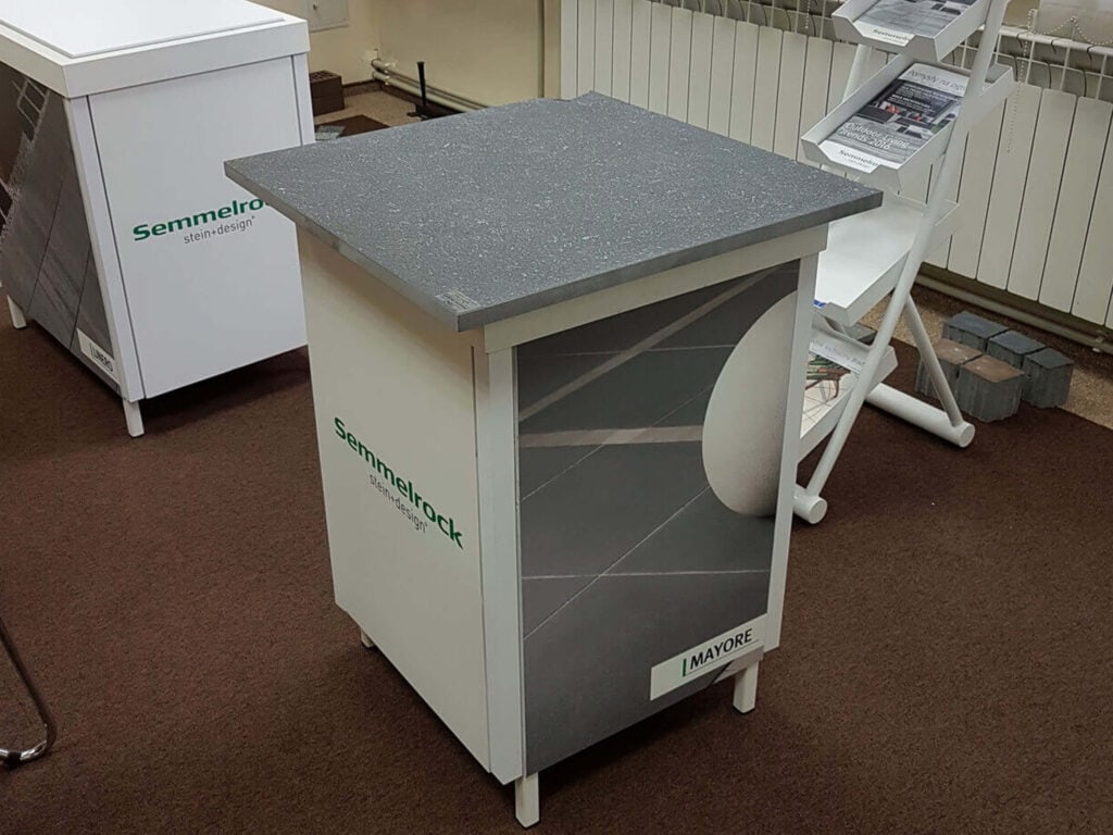 - Stoiska reklamowe eventowe – konstrukcje na konferencje, gale i eventy korporacyjne z mównicami, tablicami i elementami scenografii.