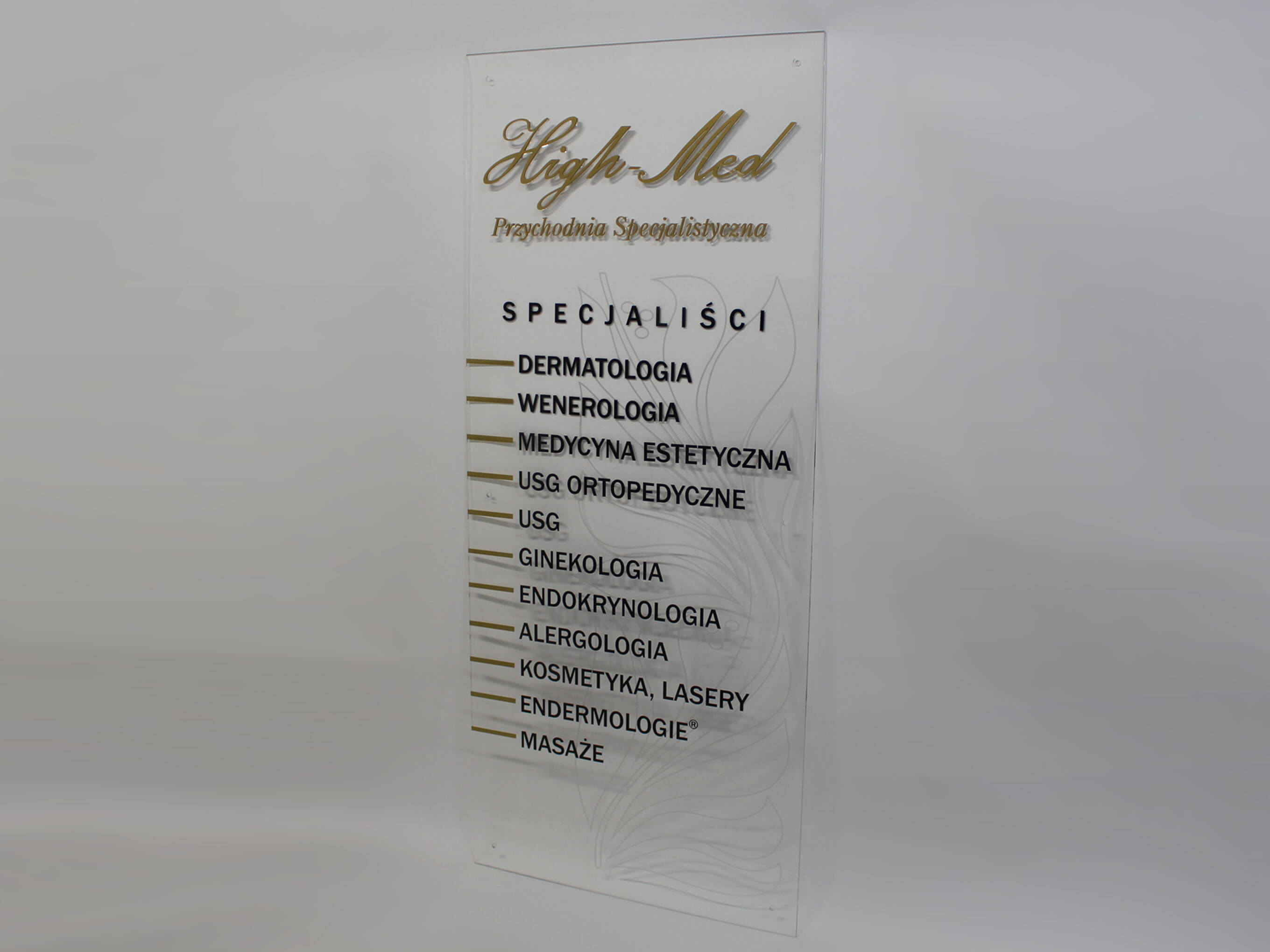 Tablica reklamowa z plexi bezbarwnej dla przychodni High-Med